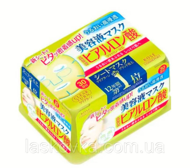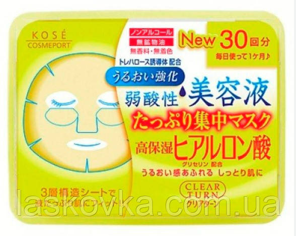 Маска для обличчя з гіалуроновою кислотою Kose Clear Turn Hyaluronic Acid (30 шт)
