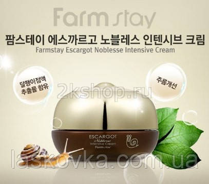 FarmStay Escargot Noblesse Intensive Eye Cream інтенсивнодійний крем для повік і усунення зморщок шкіри навколо очей, створений на основі муцину, отриманого від королівських равликів Escargot Noblesse, які мешкають виключно в екологічно безпечних районах.
