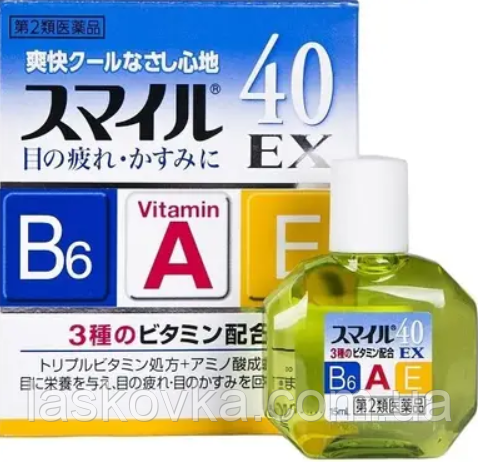 Очні краплі Lion Smile 40 EX з вітамінами A, E і B6 для свіжості очей, 15 мл