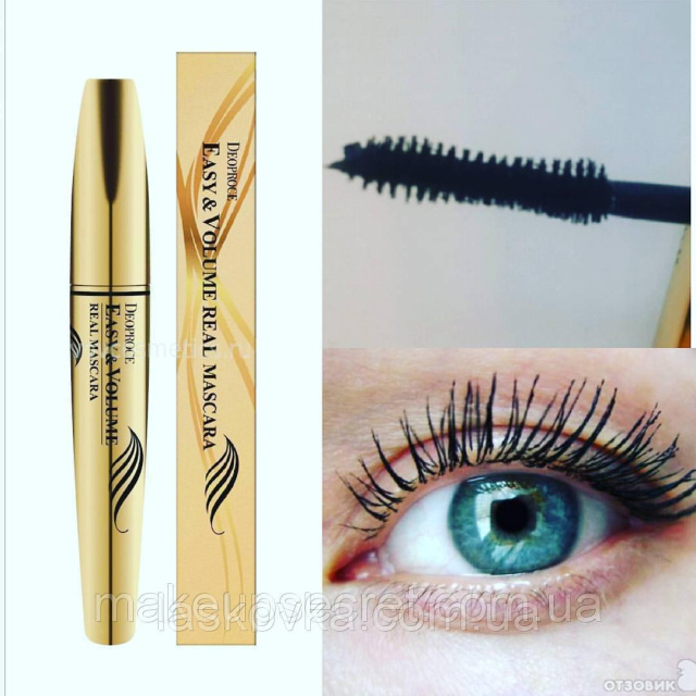 Туш Deoproce Easy Volume Real Mascara містить вугільно-чорний комплекс (екстракт чорної ікри, екстракт чорного часнику, екстракт чорних соєвих бобів), який надає віям насичений і природний колір, живить і зміцнює вії. стійка туш — не змащується, не обсипається, не стирається від води, дощу, снігу або сліз; термостійкий ефект — стійка до прохолодної води та легко знімається з вій за допомогою теплої води;
