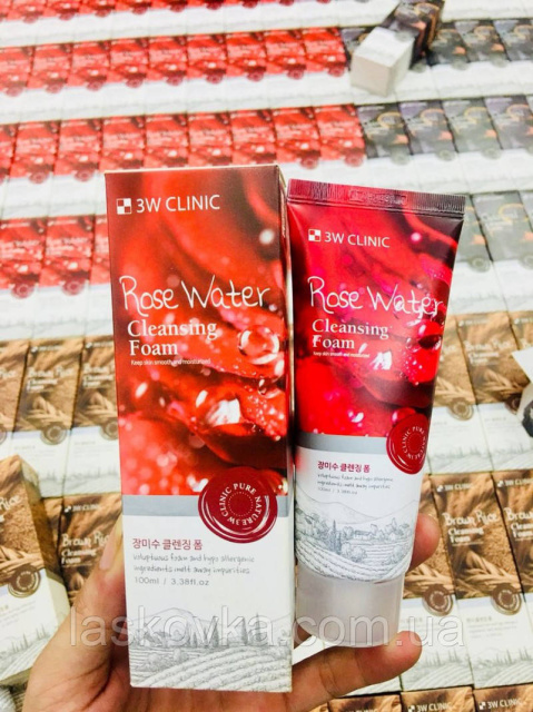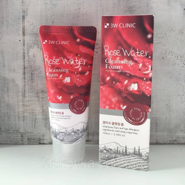 Очисна пінка з екстрактом троянди 3W Clinic Rose Water Cleansing Foam пробагата екстрактом троянди пінка для вмивання делікатно очищає шкіру обличчя й надає їй здорового кольору, сяйва, збагачуючи її поживними речовинами та природними вітамінами.