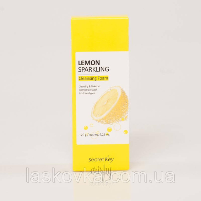 Лимонна пінка Secret Key Lemon Sparkling Cleansing Foam ніжна, ароматна, освіжна пінка на газованій воді призначена для делікатного очищення шкіри: безперешкодно змиває з обличчя повсякденні забруднення, залишки косметики, надлишки шкірного жиру, сприяє відлущуванню змертвілих клітин шкіри, а також розчиняє сальні корки в порах.