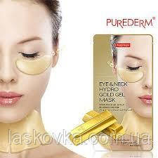 Маска гідрогелева з колоїдним золотом для шиї та патчі для зони навколо очей Eye&Neck Hydro Gold Gel Mask Purederm, 1 шт +2 шт.