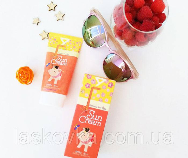 ELIZAVECCA Milky Piggy Sun Cream - cЗасіб із дуже високим ступенем захисту поглинає 98% UVB-променів, що викликають почервоніння й опіки, а також від UVA-променів.