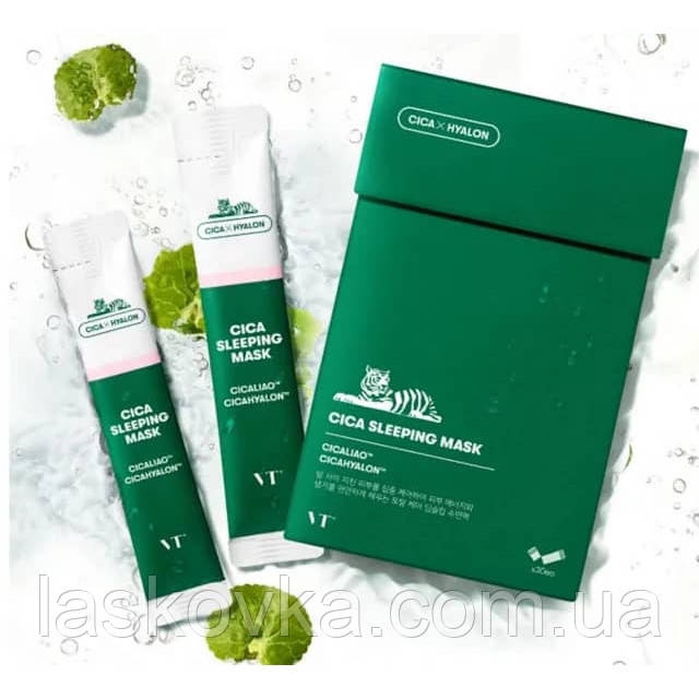 Нічна маска для чутливої та проблемної шкіри VT Cosmetics Cica Sleeping Mask швидко відновлює подразнену та пошкоджену шкіру.