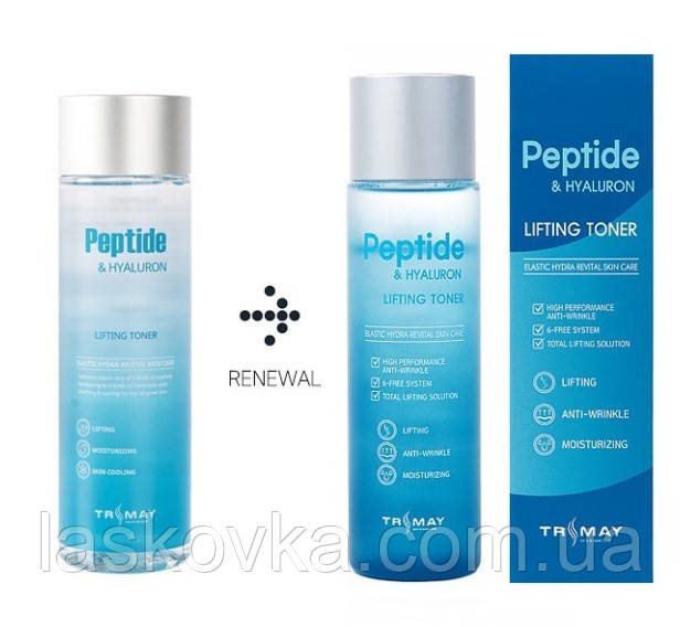 Ліфтинг тонер Trimay Peptide&Hyaluron Lifting Toner призначений для сухої й чутливої шкіри, що втратила пружність і еластичність.