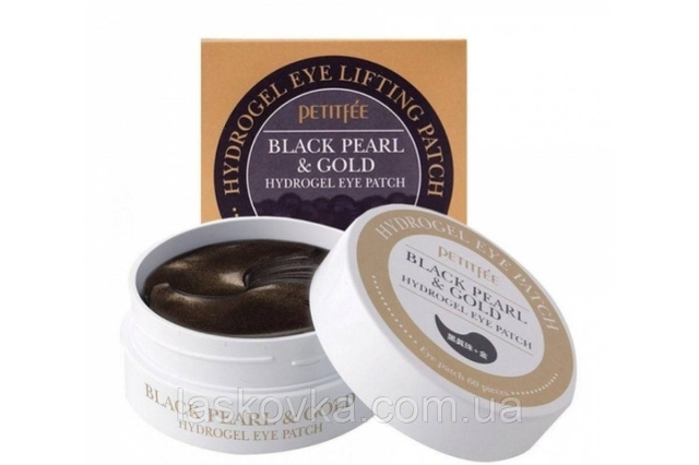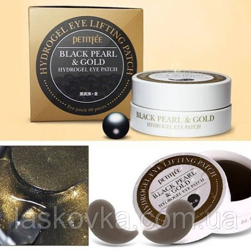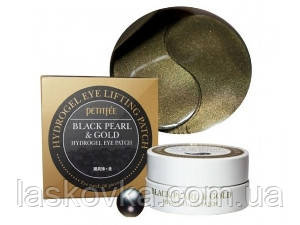 Ліфтинг — патчі для шкіри навколо очей із чорними перлами та золотом Petitfee Black Pearl & Gold Hydrogel Eye Patch , 60 шт.