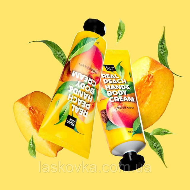 Крем для рук і тіла з екстрактом персика FarmStay Real Peach Hand&Body Cream зволожує шкіру, сприяє збереженню еластичності, пружності шкіри, пом'якшує та відновлює суху, лугу та в'янучу шкіру, наповнює її вітамінами та життєвою силою.