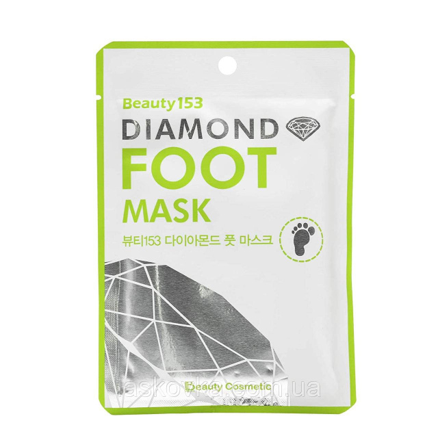 Зволожувальна маска-шкарпеточки Beauty153 Diamond Foot Mask для ефективного відновлення шкіри стоп. Маска просякнута особливою активною есенцією, яка сприяє інтенсивному живленню, зволоженню та пом'якшенню шкіри, надає тонізувальну дію прискорює процеси регенерації.