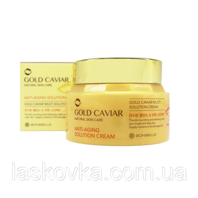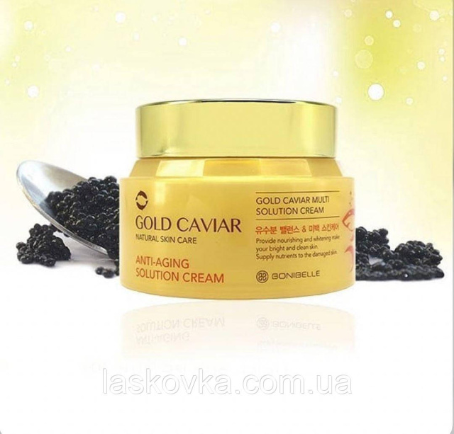 Крем Bonibelle Gold Caviar Anti-Aging Solution Cream — з екстрактом ікри, золотом і комплексом рослинних екстрактів, призначений для інтенсивного омолодження шкіри та уповільнення процесів її старіння.