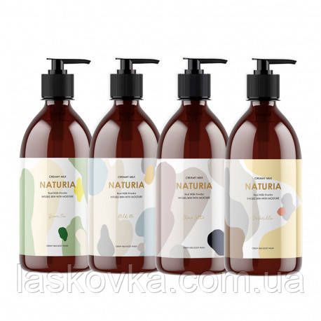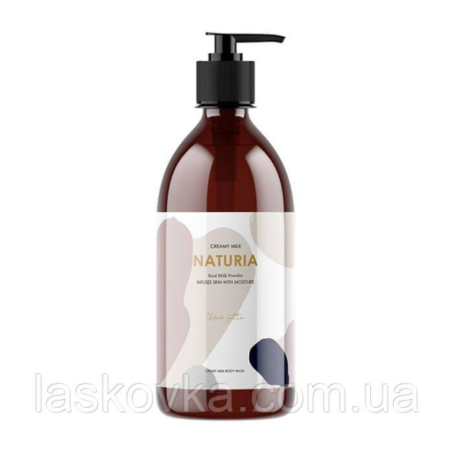 Гель для душа Evas Naturia Creamy Milk Body Wash Choco Latte — м'який очисний гель для очищення й пом'якшення шкіри тіла з ароматом шоколаду.