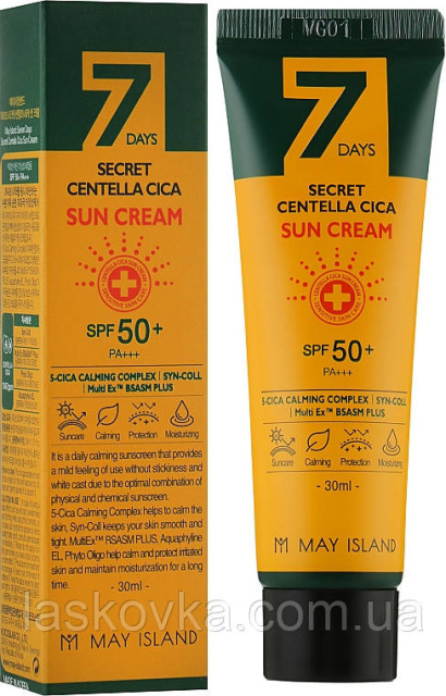 СОНЦЕЗАХИСТНИЙ КРІМ З ЦЕНТЕЛИЙ MAY ISLAND 7 DAYS SECRET CENTELLA CICA SUN, 30 мл
