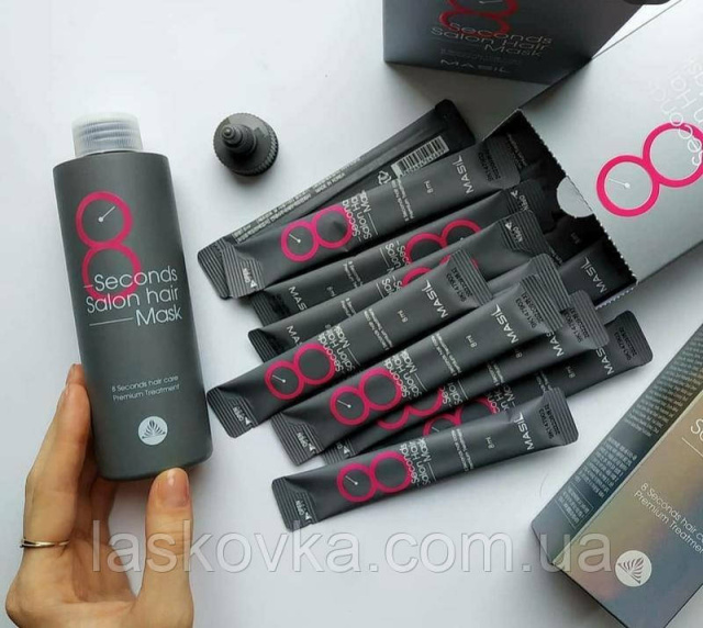Маска для волосся MASIL 8 Second Salon Hair Mask дає дивовижний ефект від використання вже впродовж 8 секунд після нанесення. В особливо критичних випадках, на сильно пошкодженому волоссі до настання помітного ефекту доведеться потримати маску до 3-5 хвилин.