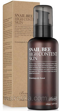 Тонер із високим вмістом муцину равлика та бджолиною отрутою Snail Bee High Content Skin от Benton цінним повним браком спирту та високими лікувальними властивостями.