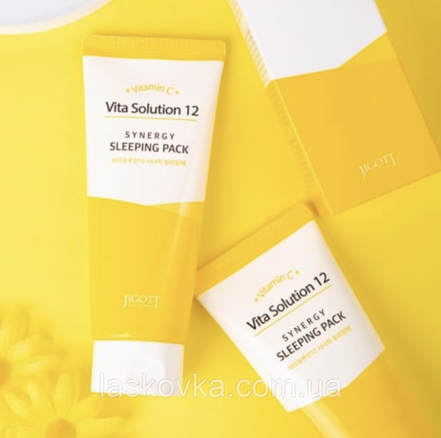 UA MarketМиколаївська областьІнтернет-магазин Asia ShopТовари та послугиМаски для обличчя, патчі для повікНічна маска для обличчя з вітаміном C для сяйва шкіри JIGOTT Vita Solution 12 Synergy Sleeping Pack