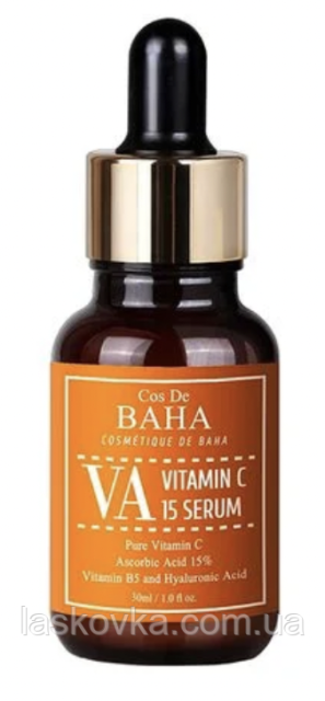 Сироватка для сяяння шкіри обличчя Cos De Baha Vitamin C 15% Ascorbic Acid з вітаміном С та пантенолом