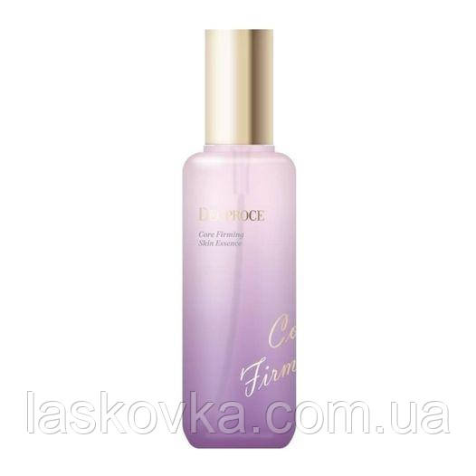 Антивікова зміцнювальна есенція для обличчя Deoproce Core Firming Skin Essence виконує омолоджувальну дію, протистоїть появі в'ялості та птозу, уповільнює процес глікації. Вона підтягує шкіру, підвищує пружність і еластичність тканин, відновлює пошкоджені ділянки шкіри, зменшує зморшки.
