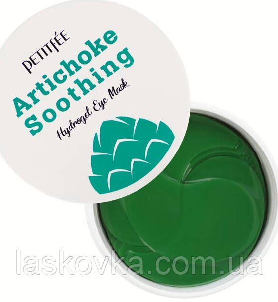 Гідрогелеві патчі Petitfee Artichoke Soothing Eye Mask створюють льодяний ефект, добре заспокоюють і освіжають шкіру в області очей, усувають набряклість, видаляють темні кола під очима.