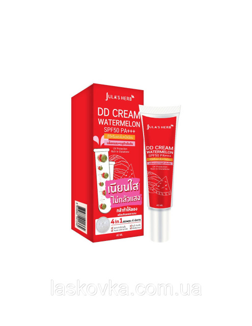 DD cream від Jula's Herb містить екстракт кавуна та глутатіон, які ефективно відбілюють пігментні плями та ластовиння, а також вирівнюють шкіру обличчя, підтягують, усувають в'ялість та ознаки старіння шкіри.